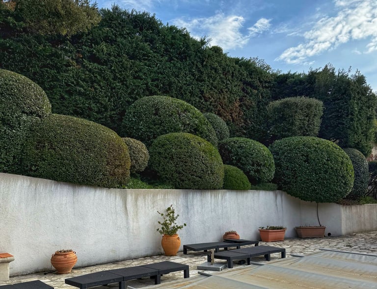 Taille ornementale de buissons afin d’embellir les habitations et d’harmoniser les espaces extérieurs de plusieurs jardins.