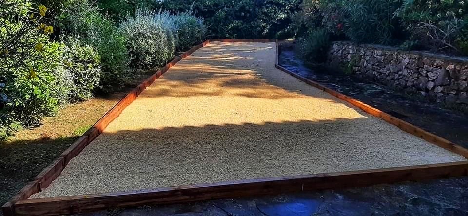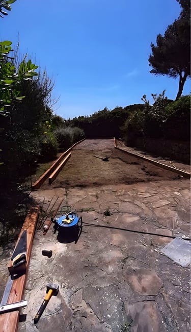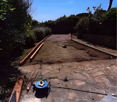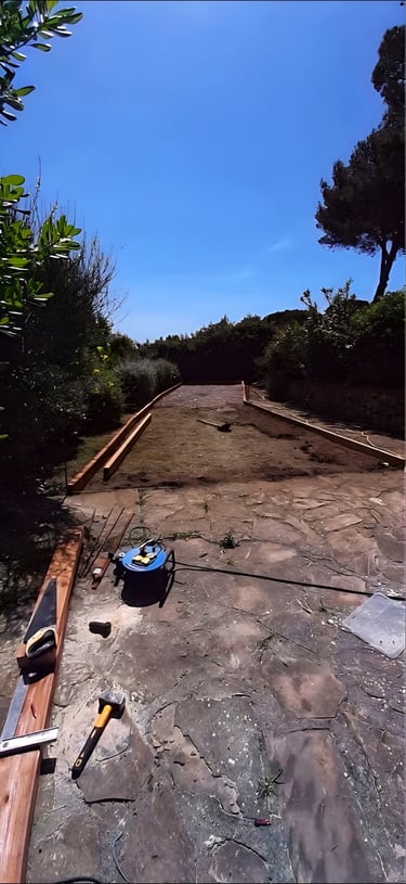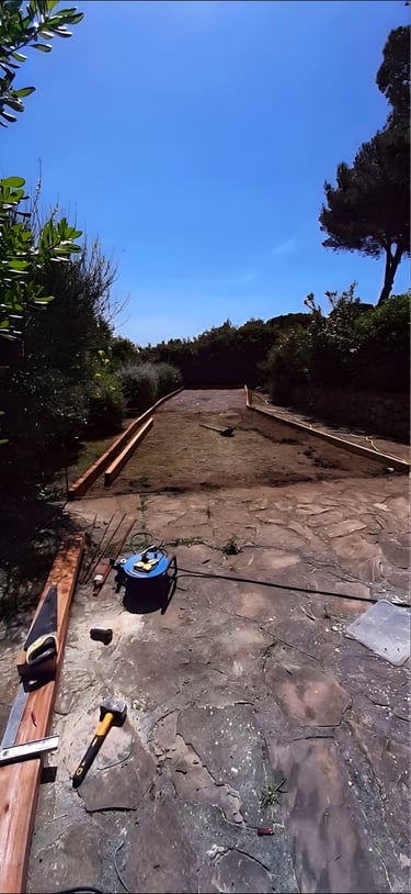 Création complète d’un terrain de boules avec préparation du sol, mise à niveau et finitions soignées, garantissant durabilité et confort de jeu.