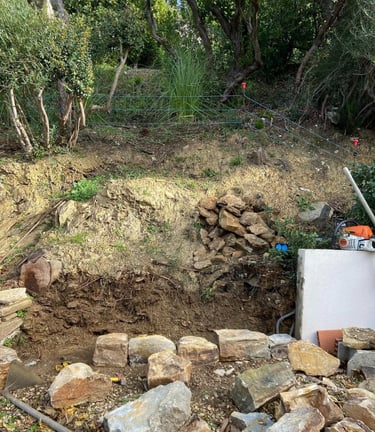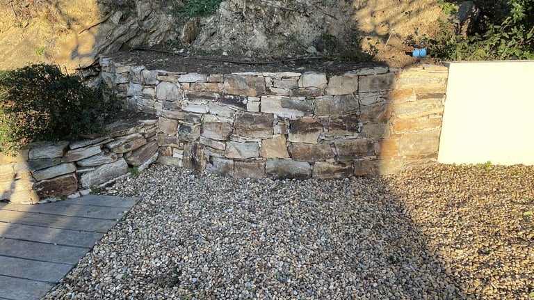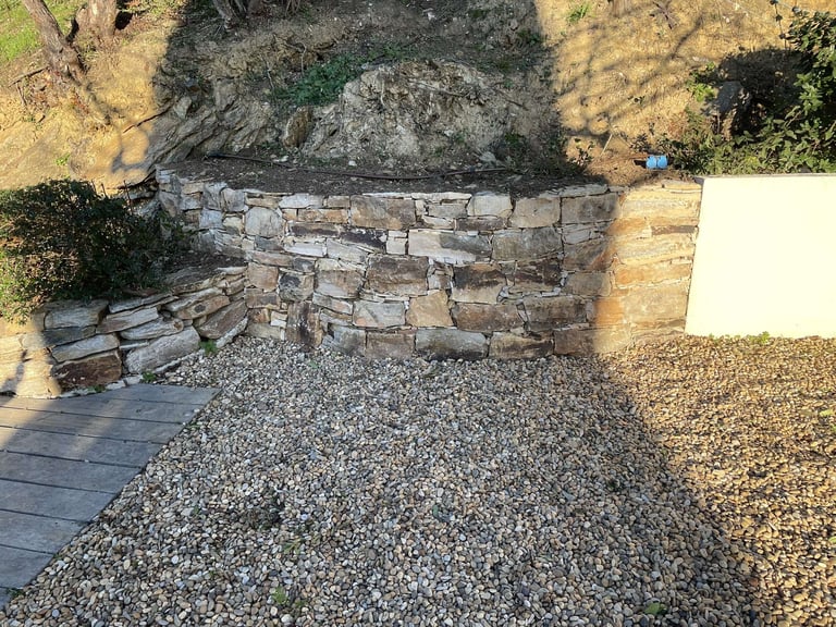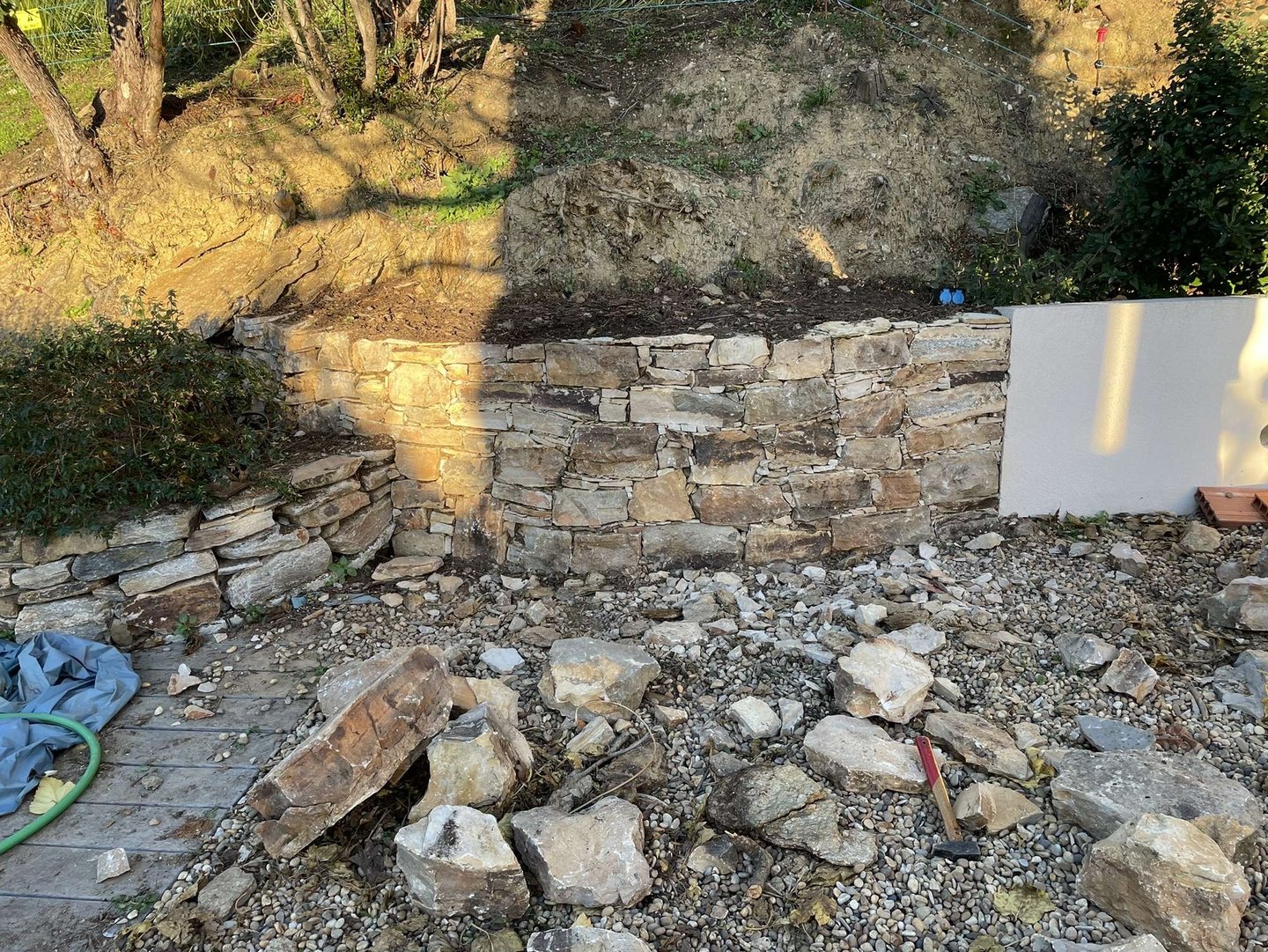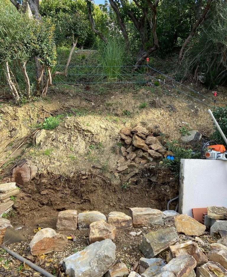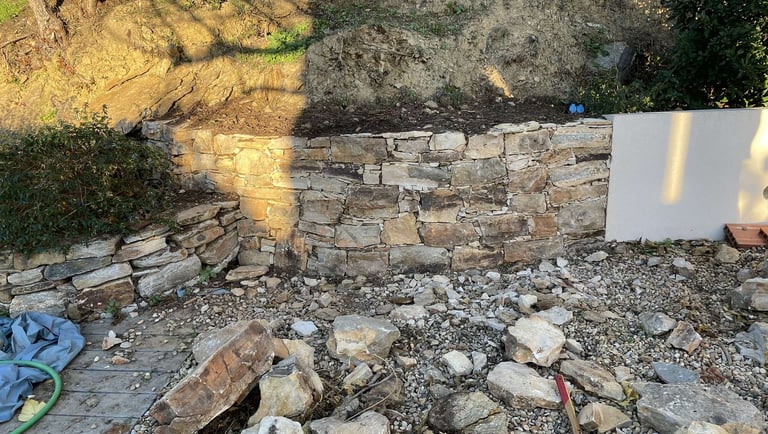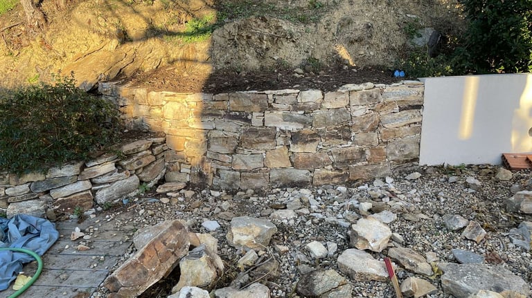 Intervention pour la création d’un mur en pierre, alliant robustesse et esthétisme.