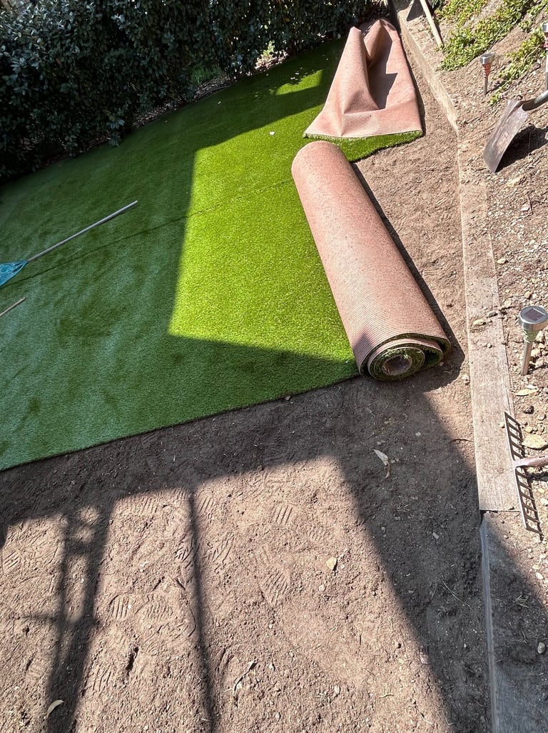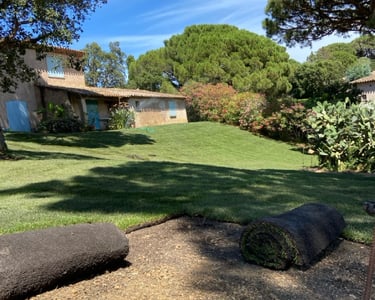 Réalisation d’une pose de gazon en rouleau de haute qualité, garantissant un rendu immédiat, homogène et durable.Une solution efficace pour valoriser rapidement l’espace extérieur.