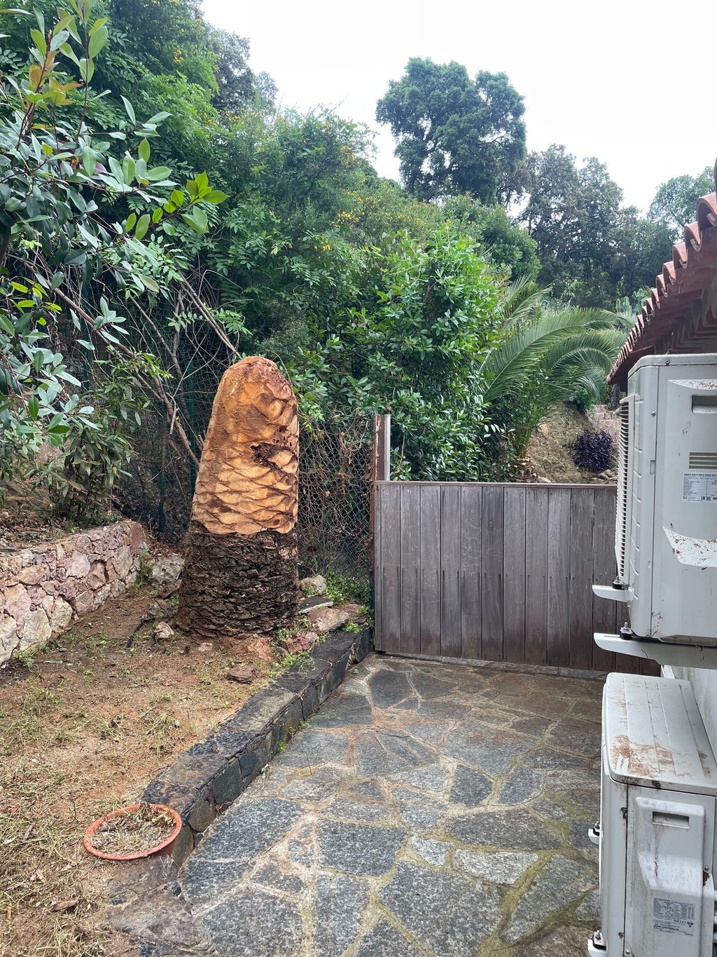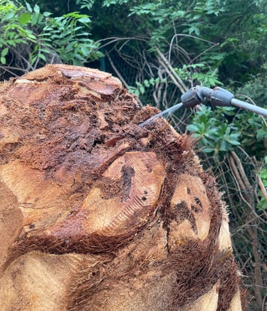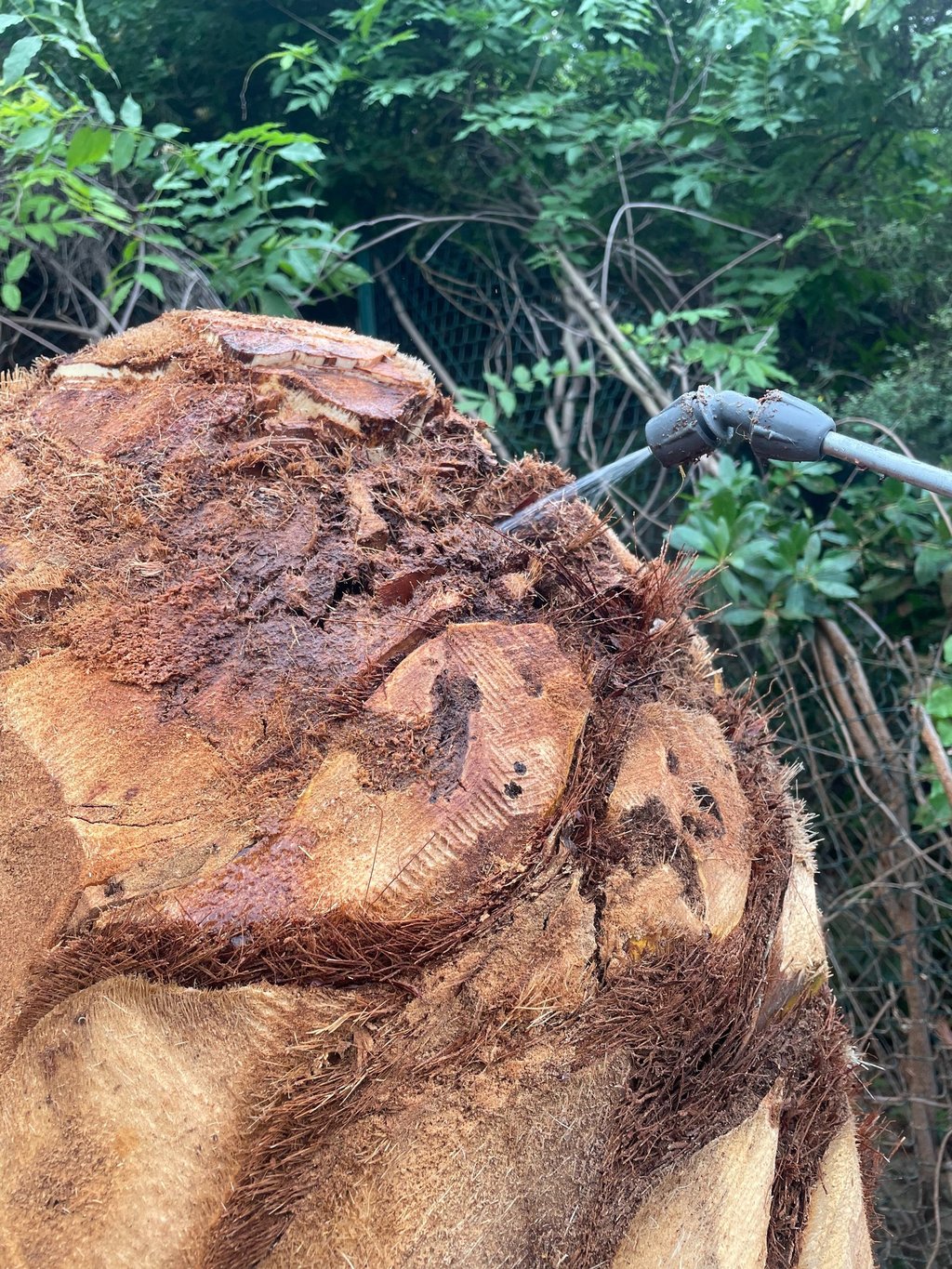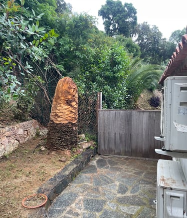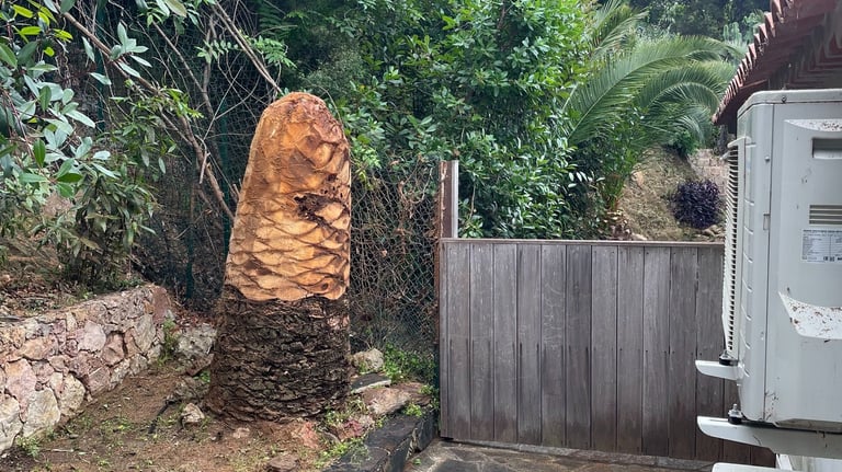 L’arbre a été soigneusement limé, permettant de le traiter efficacement et de favoriser une repousse vigoureuse. Intervention réalisée avec soin pour assurer la santé du palmier et la sécurité autour.
