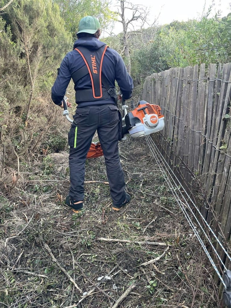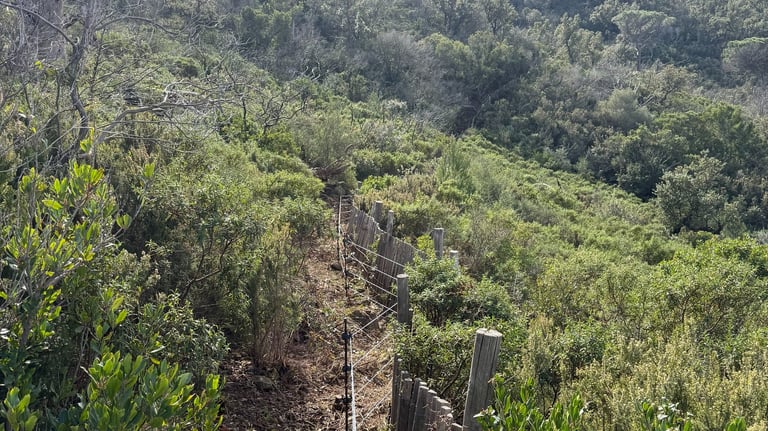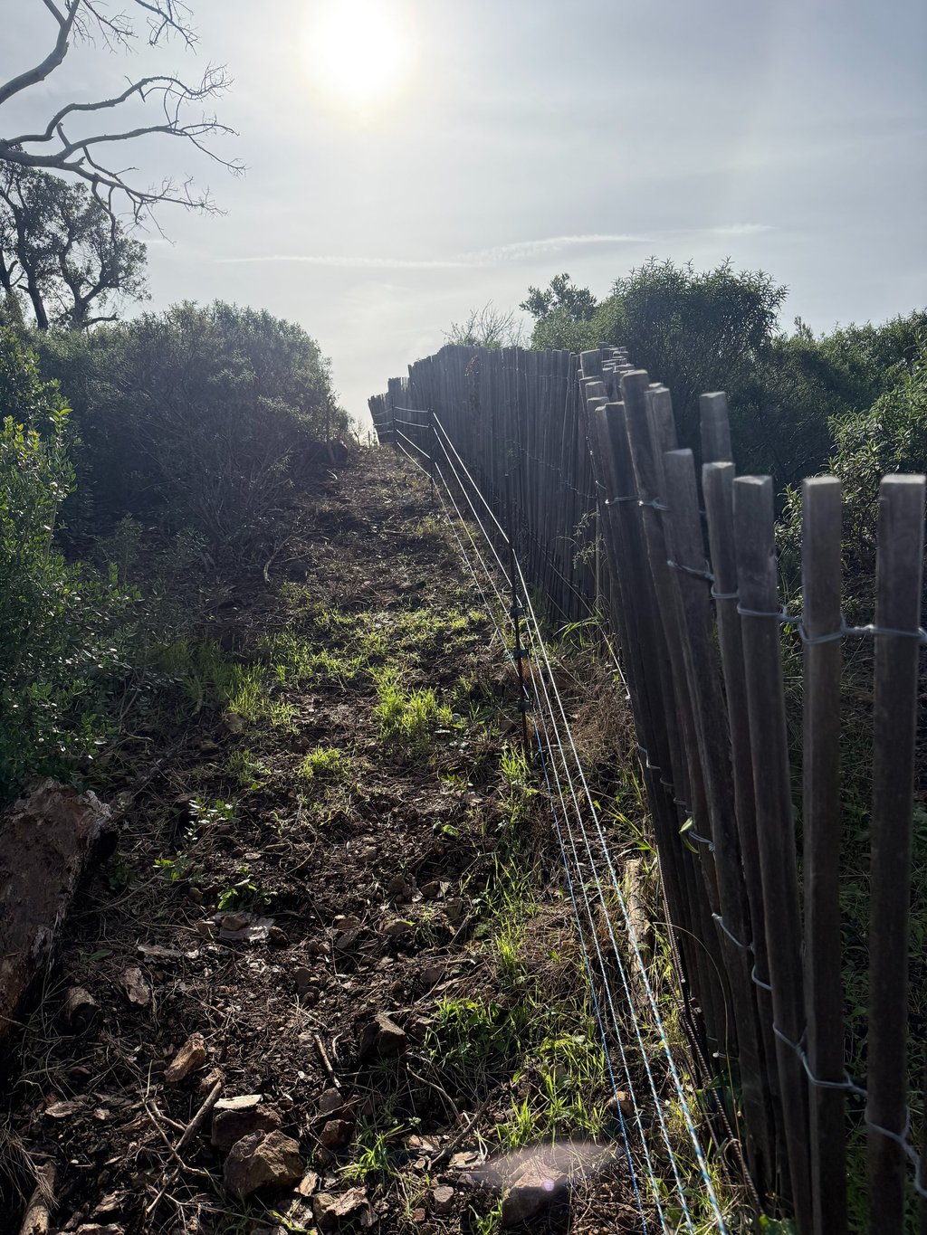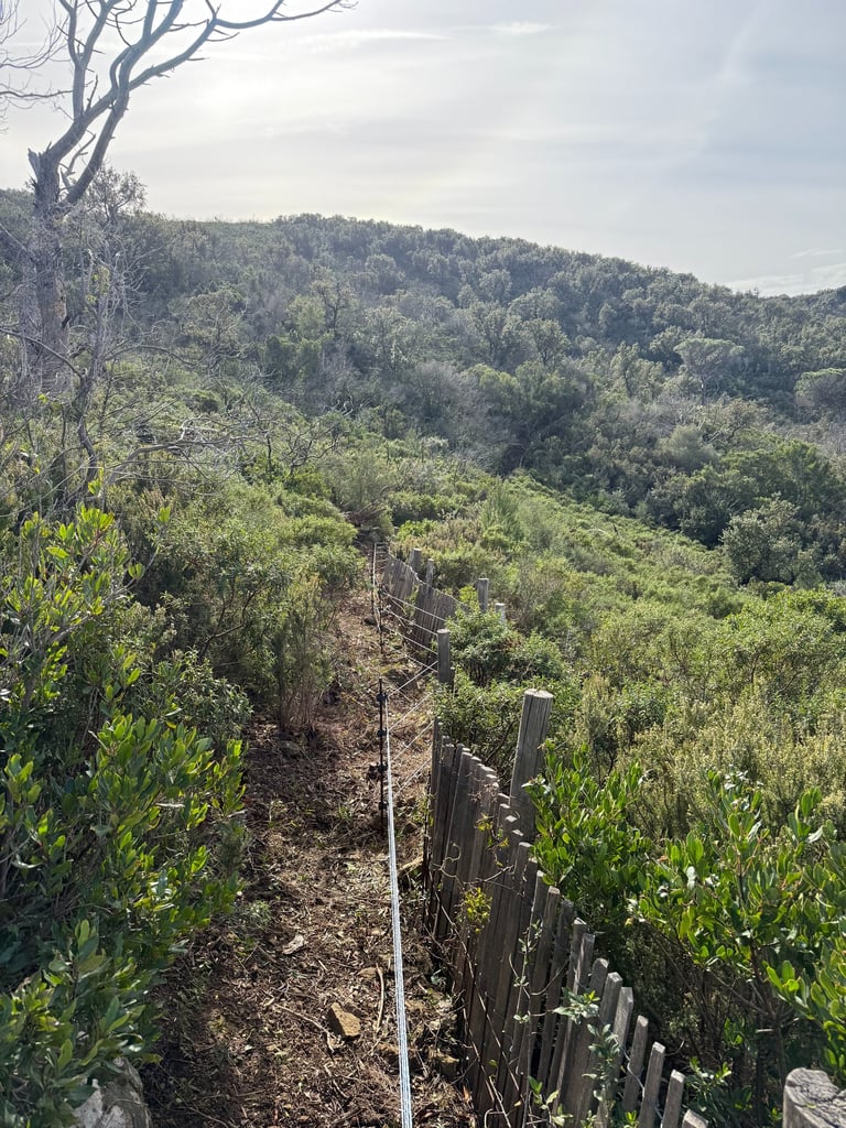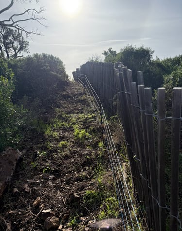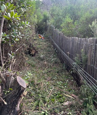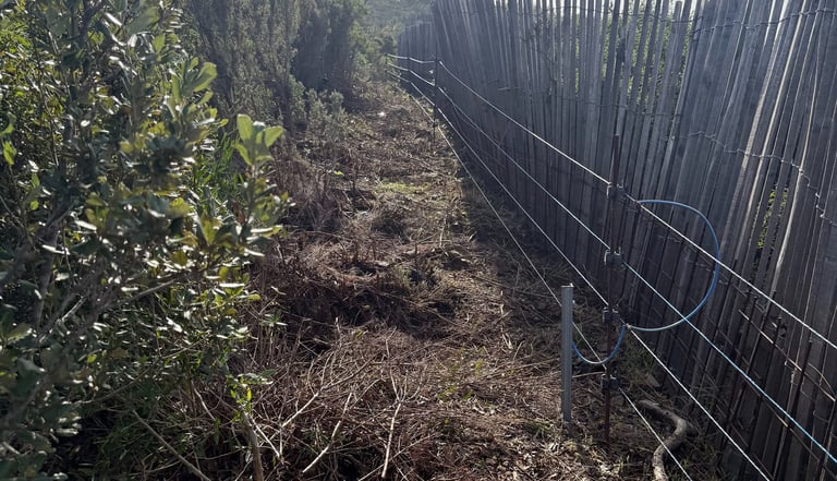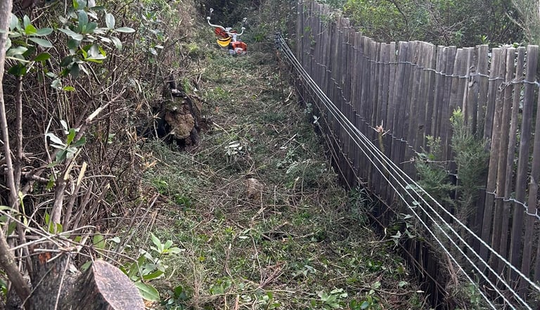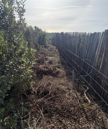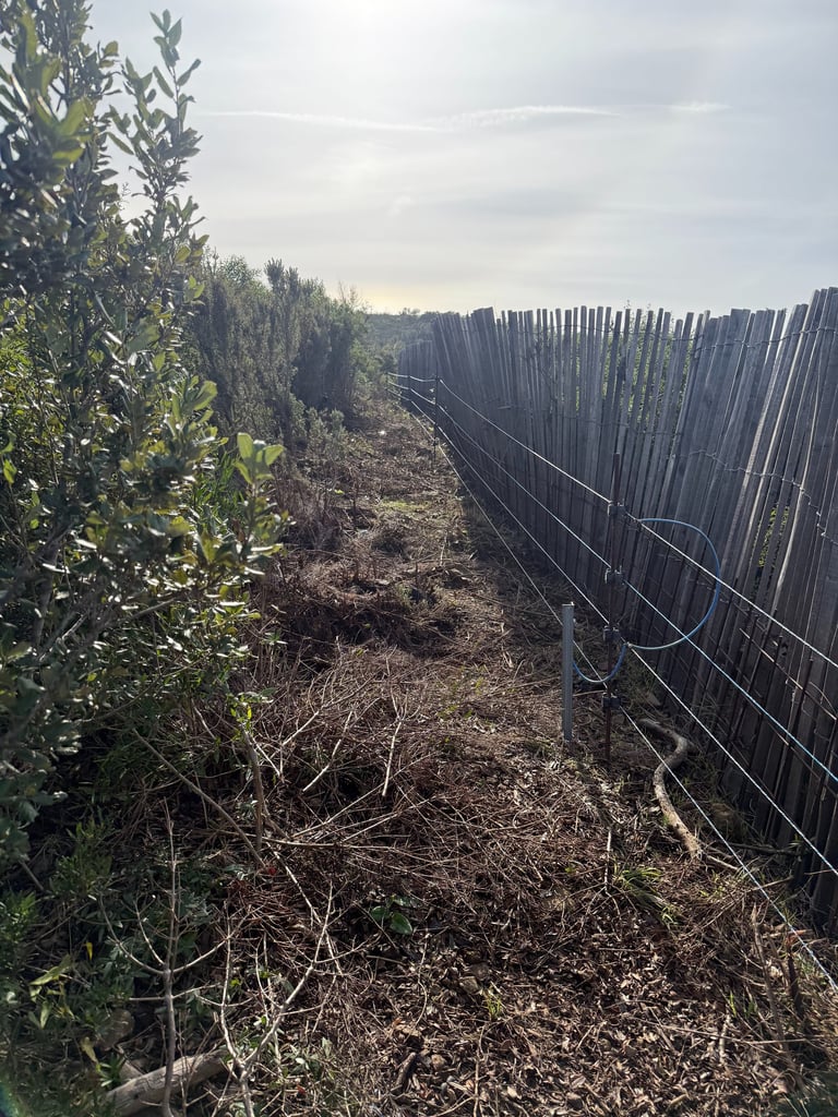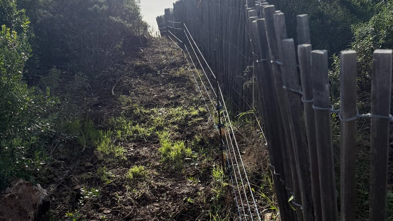Intervention de grande envergure pour la remise en état complète d’une clôture électrique sur plusieurs hectares de colline.