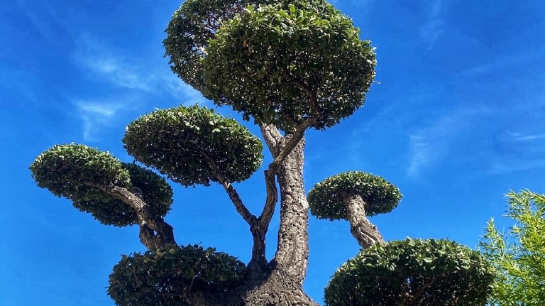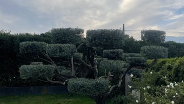 Taille en plateau d’un olivier réalisée afin de structurer l’arbre et lui donner une forme harmonieuse.