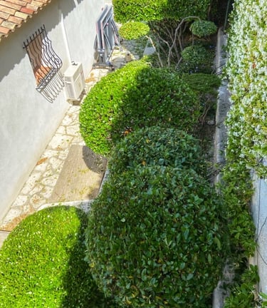 Taille ornementale de buissons afin d’embellir les habitations et d’harmoniser les espaces extérieurs de plusieurs jardins.