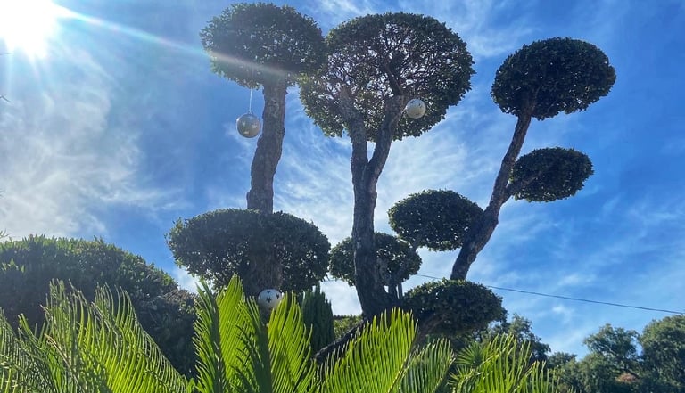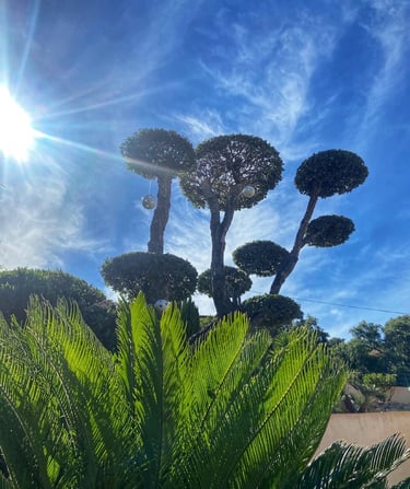 Taille ornementale de chênes réalisée pour valoriser le jardin et harmoniser l’espace extérieur.