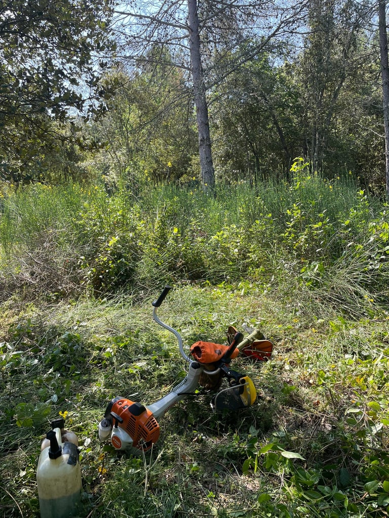 Débroussaillage de plusieurs hectares de terrains et zones forestières visant à entretenir les espaces et réduire les risques d’incendie.