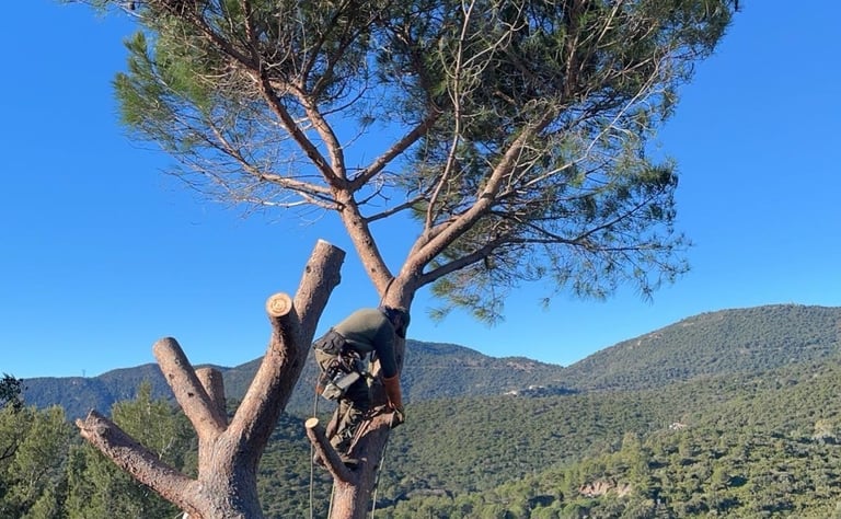 Intervention pour l’abattage d’un pin parasol afin de dégager l’espace pour une future construction. L’arbre a été démonté avec soin, et toutes les branches et le bois ont été brûlés sur place, conformément aux autorisations en vigueur.